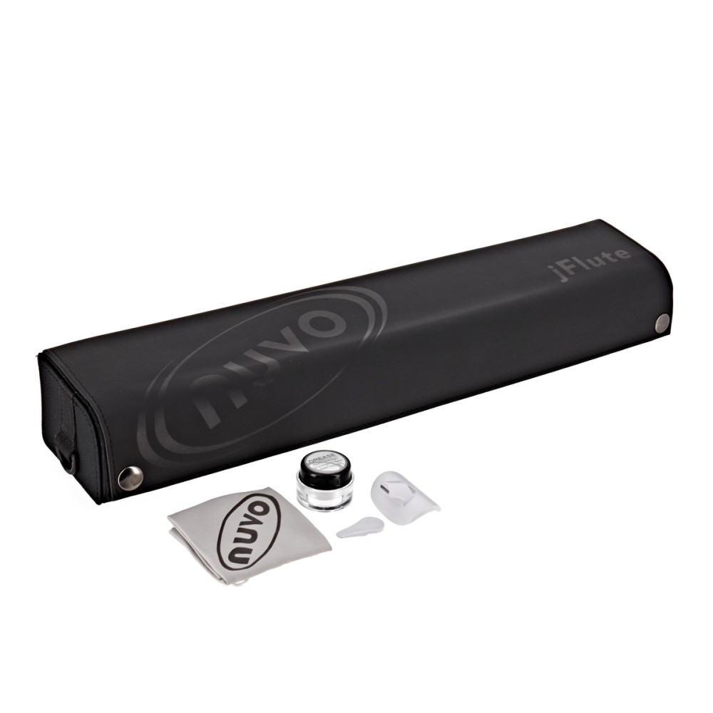 NUVO jFlute 2.0 je mezistupeň mezi zobcovou flétnou a klasickou příčnou flétnou , používána pro potřeby ZUŠ . Primárně je určena pro malé , začínající hráče pro svojí mechanickou stavbu a nenáročnou údržbou - ladění C , nejhlubší tón D , materiál plast , osy z ušlechtilé oceli , silikonové podlepky , váha 235g , pouzdro .