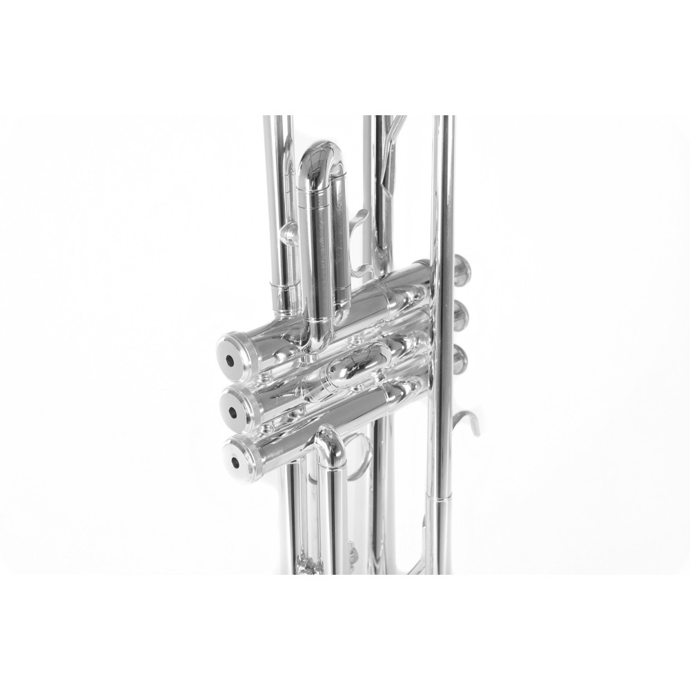 Roy Benson TR-202 S (Silver) Bb trumpeta, ML vrtání, mosazný ozvučník, mosazná ústnice.Pakfongové venkovní tahy,nerezové ventily. Stavitelný prstový kroužek 3.tahu,dolaďovač 1.tahu, 2 vodní klapky. Povrchová úprava: galvanické postříbření Lehké pouzdro.
